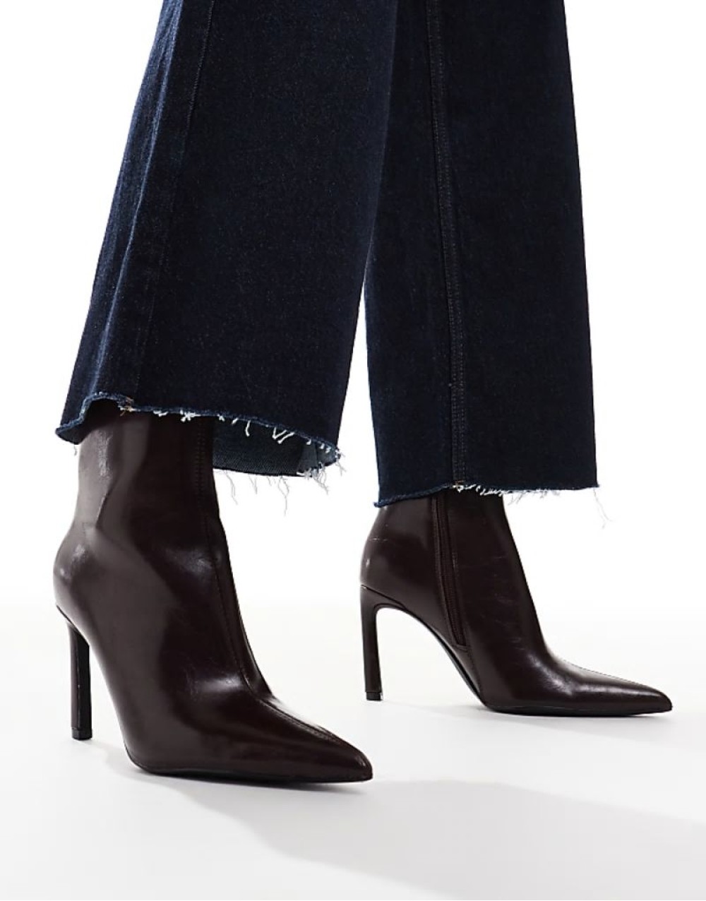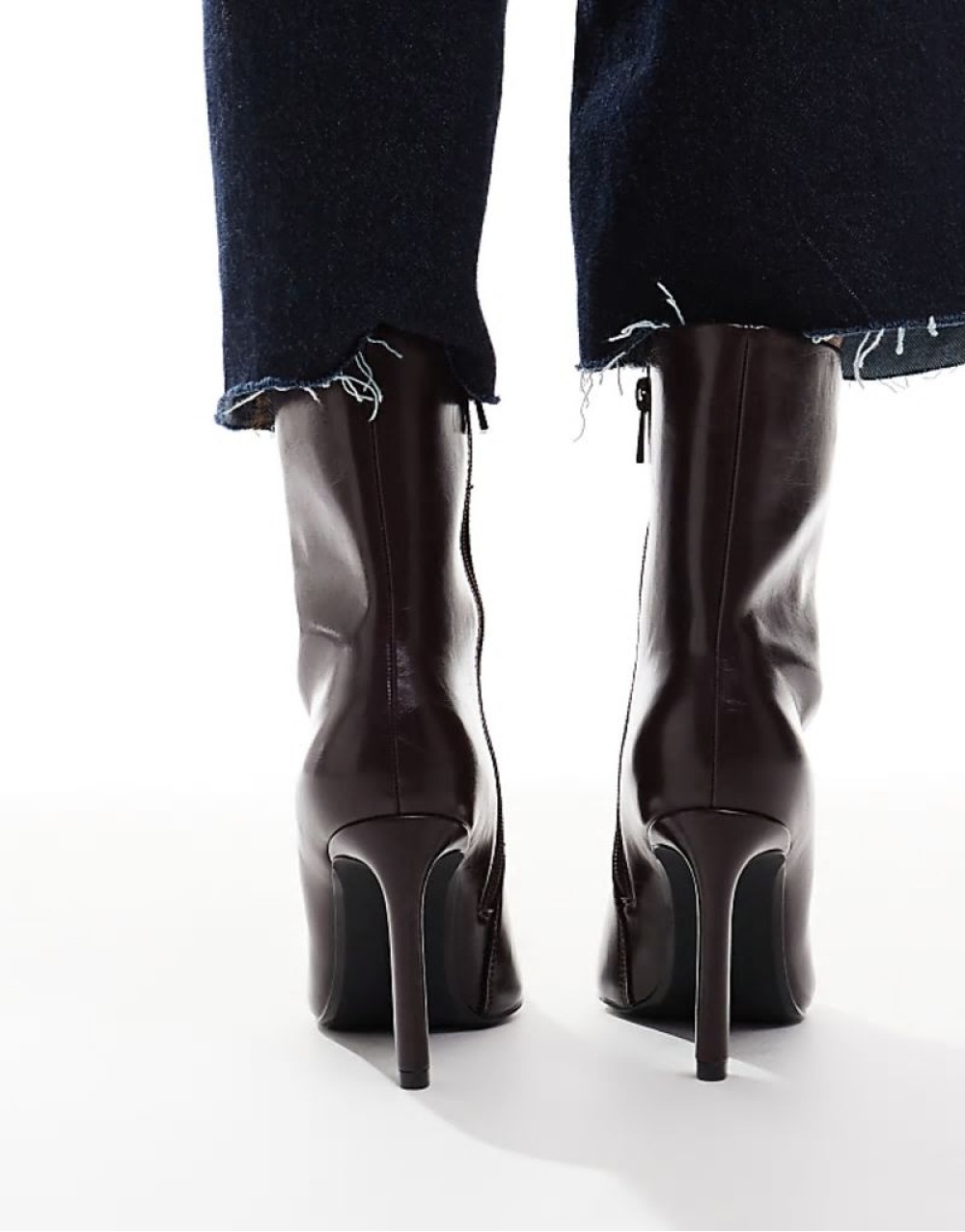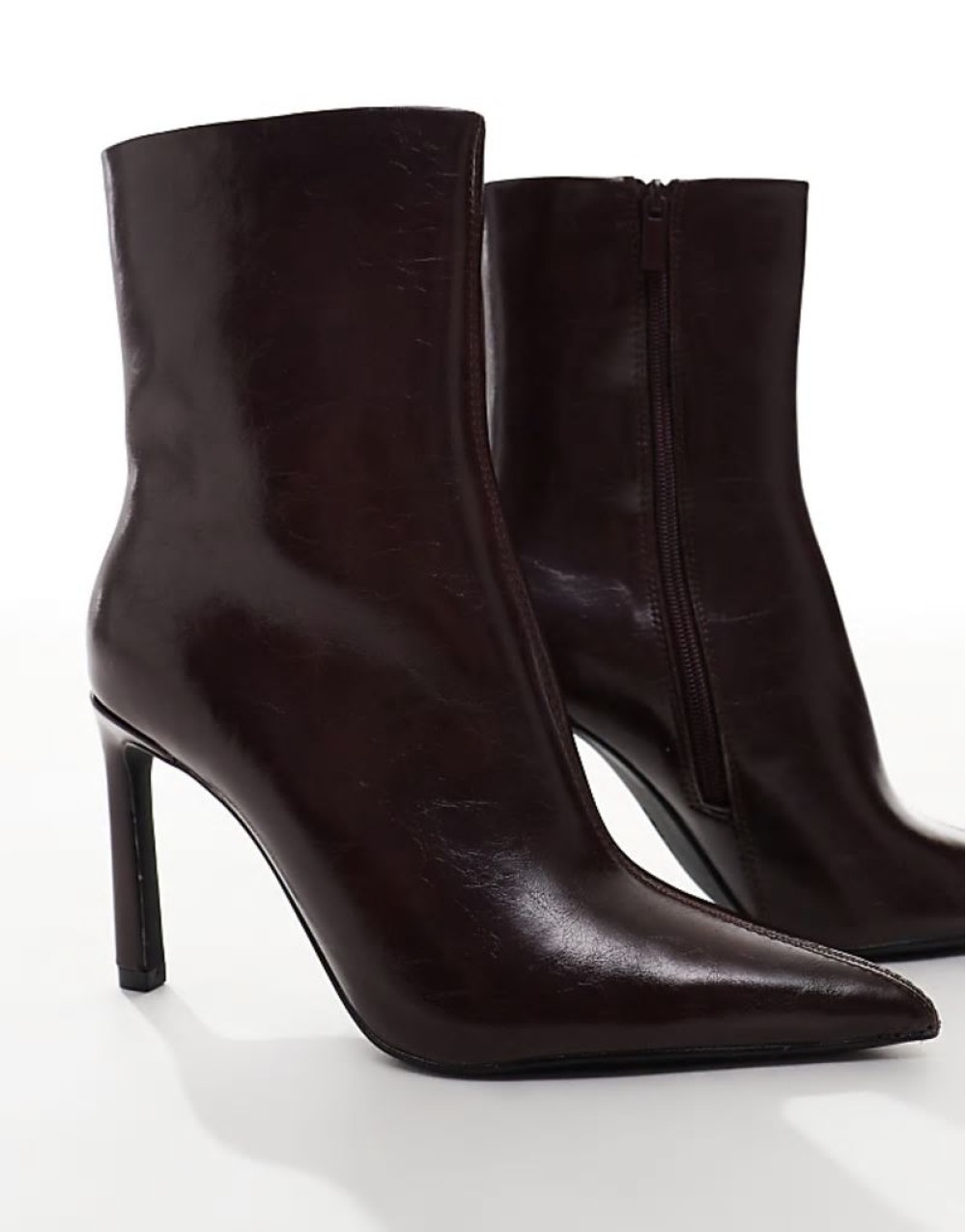 pointed toe heeled boot in deep burgundy
